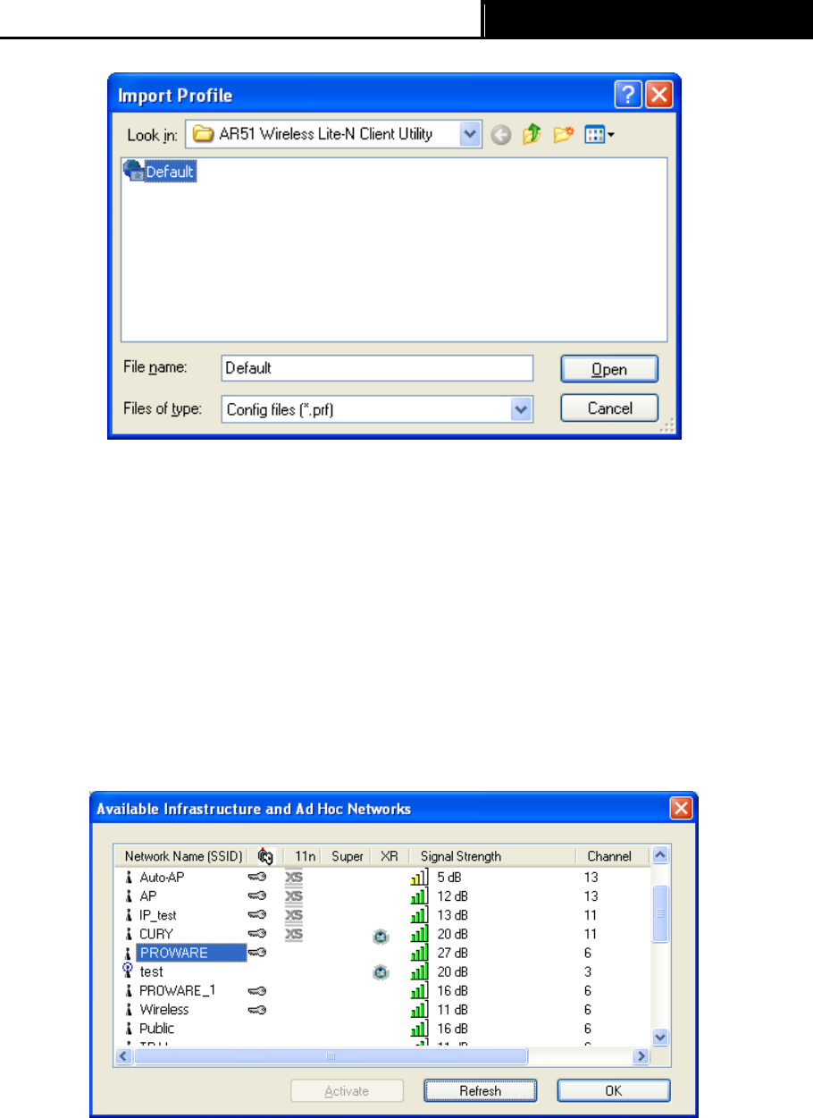 1. Click Scan on the Profile Management screen (shown in XFigure 3-2X), the Available