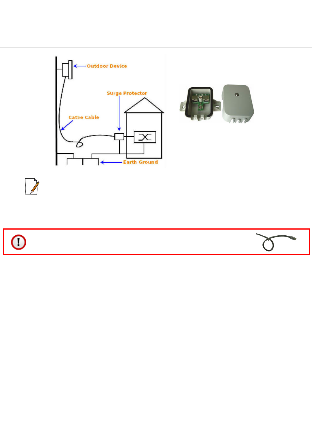 4. Connect an RJ45 terminated cable between the surge protector and the outdoor device on the Ethernet Port.