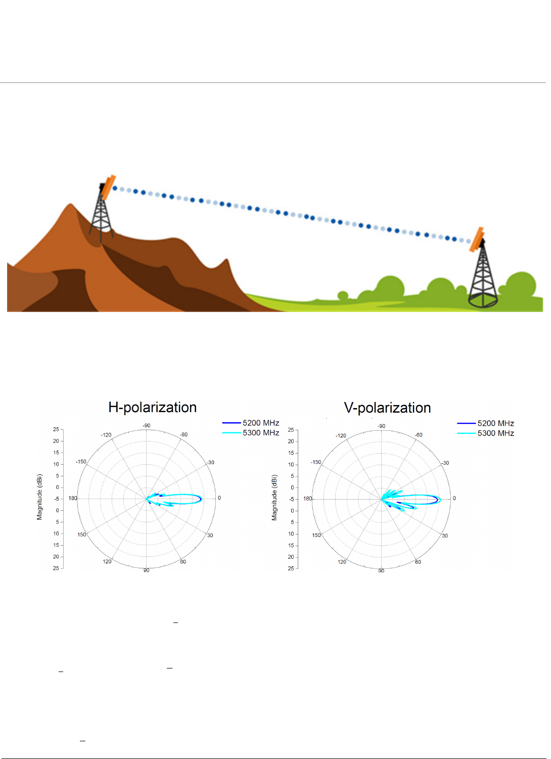 The radiation patterns for a device with Dual polarized antenna in Elevation planes are shown below in Figure 1-3. As per