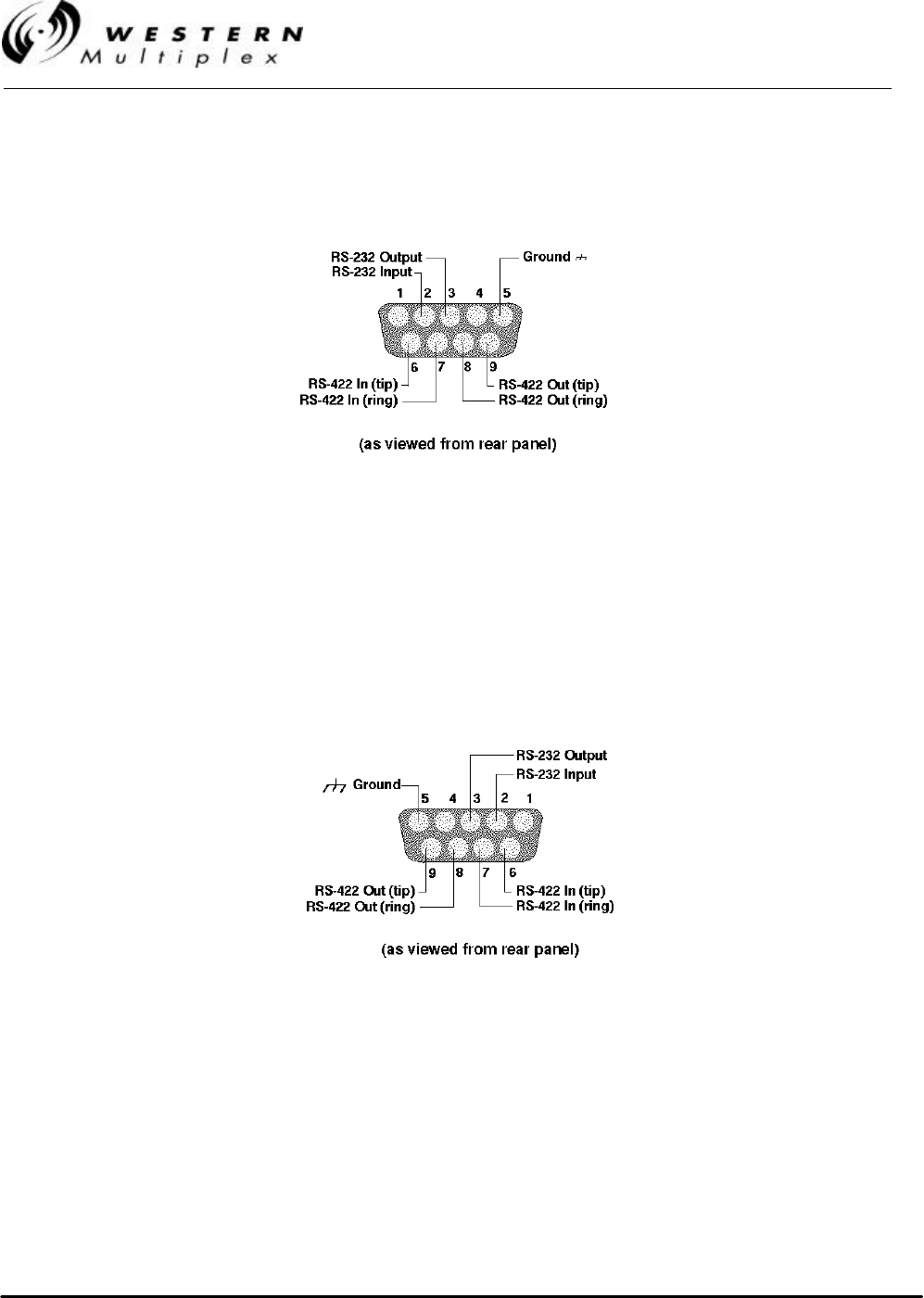Do NOT use both the RS-232 and RS-422 connections at the same time!