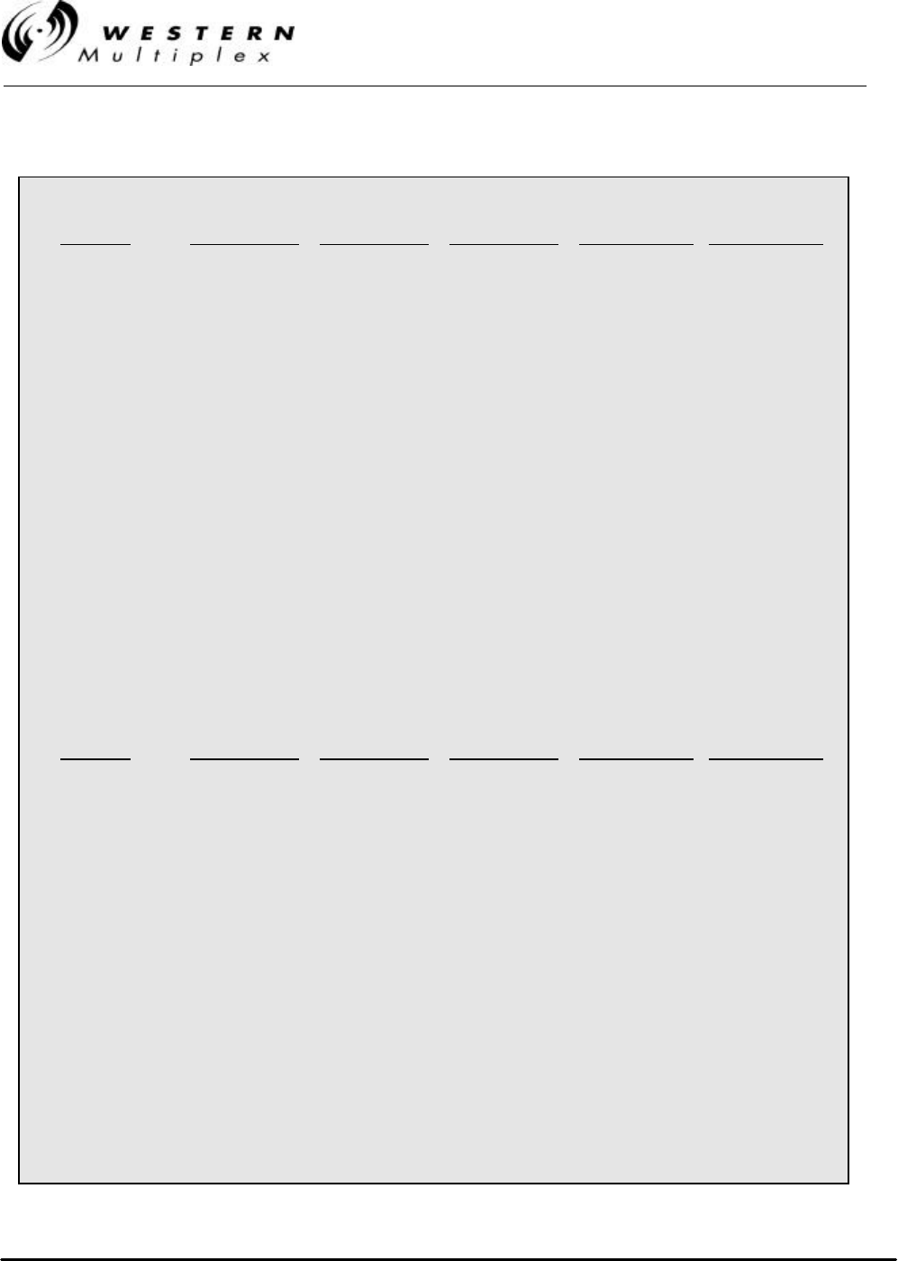 Channel 2.4 GHz 1xE1 2.4 GHz 4xE1 5.8 GHz 1xE1 5.8 GHz 2xE1 5.8 GHz 4xE1