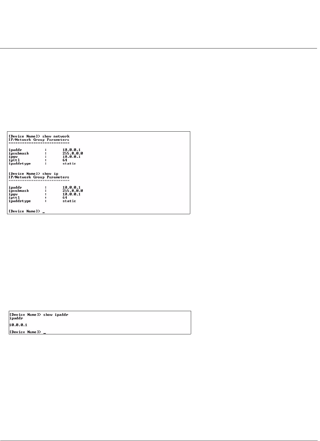 Figure A-10 Results of “show network” and “show ip” CLI Commands
