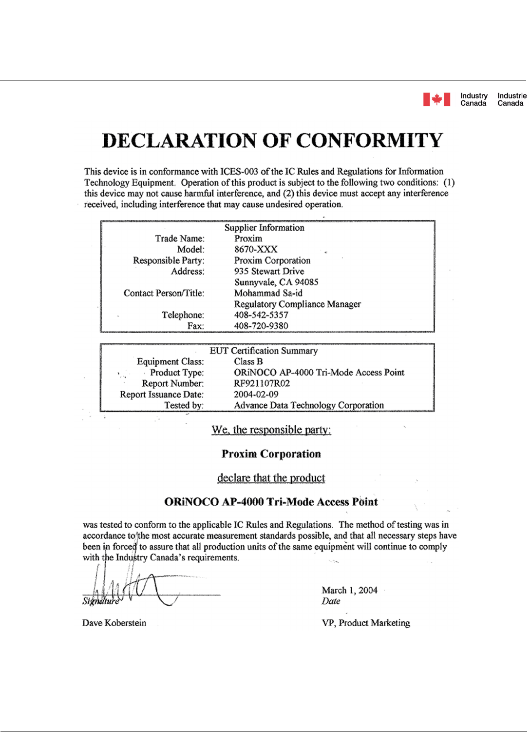 Industry Canada (IC) (AP-4000/4000M only)