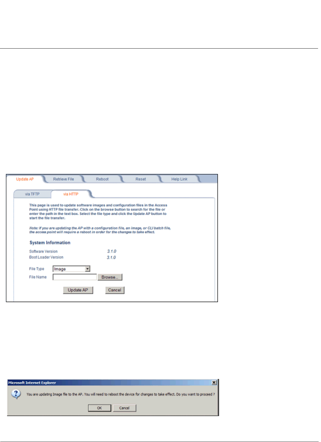 Use the Update AP via HTTP tab to update the AP with the latest software image.