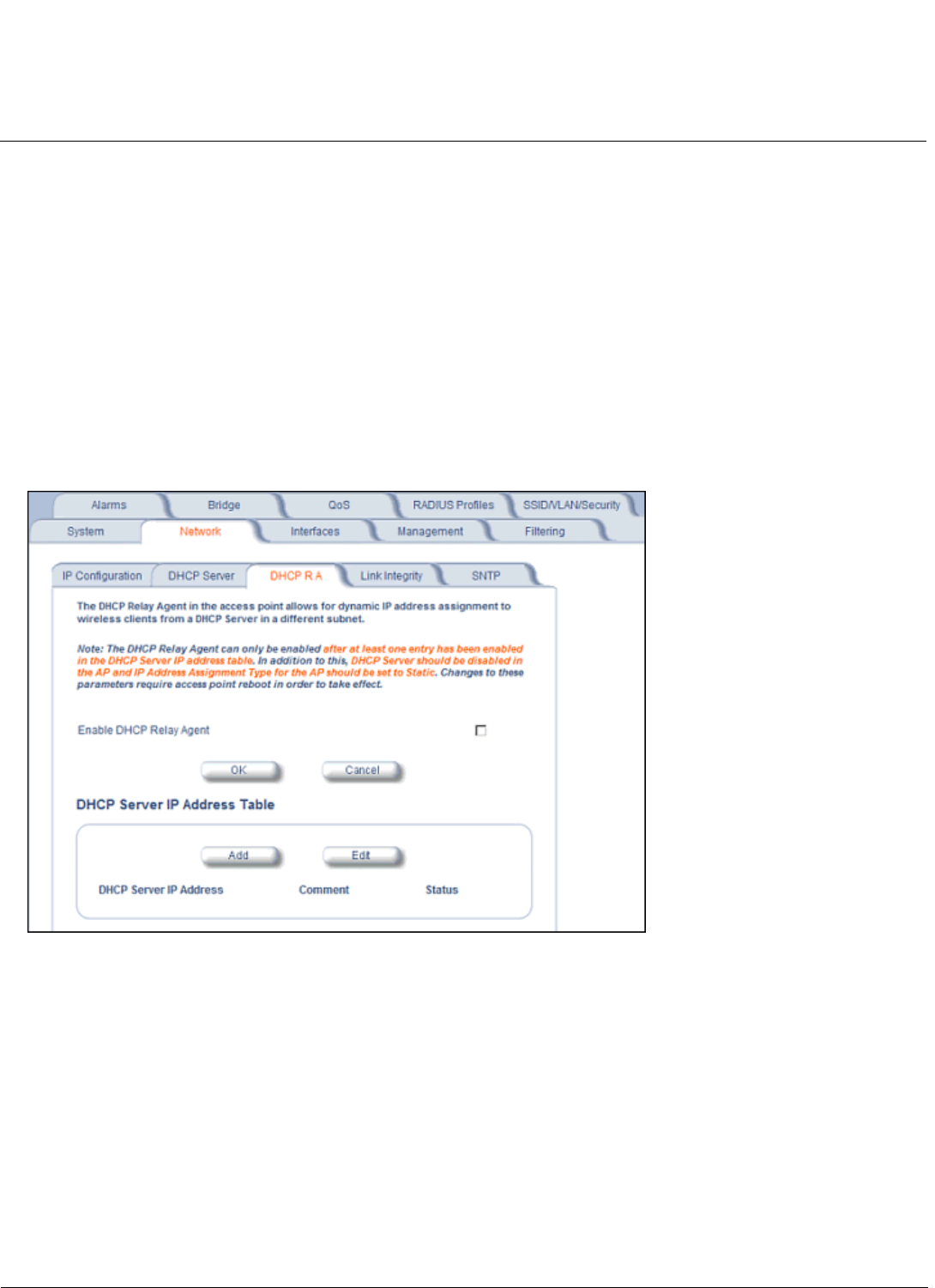 The AP supports the configuration of a maximum of 10 server settings in the DHCP Relay Agents server table. At least