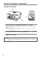 Using the Projector (continued) Turning off the power 1 1 RIGHT RISET RESET STANDBY/ON MENU 3 1 2 Press and hold the STANDBY/ON button for 1 second. • The ON indicator lights up orange and the lamp turns off. About 1 minute later, the fan stops and the indicator blinks orange. NOTE: If you press the STANDBY/ON button for less than 1 second, the projector will not switch to Standby mode. 2 Turn the MAIN POWER switch of the projector off. [ 3 Replace the lens cap.