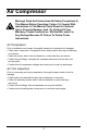 Owner’s Manual Hazard Warnings (cont’d) RISK OF HEARING LOSS What could happen: • Long term exposure to noise produced from the operation of air tools can lead to permanent hearing loss. How to prevent: • Always wear ANSI S3.19 hearing protection when using a compressor. RISK TO BREATHING/INHALATION HAZARD What could happen: • Abrasive tools such as grinders, sanders and cut-off tools generate dust and abrasive materials which can be harmful to human lungs and respiratory system.