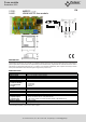 Output voltage UAUX = UIN (equal to supply voltage) Current consumption 5 mA÷ 30 mA @ UIN = 10 V ÷ 30 V DC Number of power inputs 2: a DC 5,5/2,1 outlet and a screw connector Number of power outputs 4 (AUX terminals) Protections against: - a short circuit SCP - an overload OLP - a surge - 4 x 1,0A PTC - 4 x 1,0A PTC - varistors LED indication Green LEDs L1 ÷ L4 – outputs status AUX1÷AUX4 F1 ÷ F4 fuses 4 x 1,0A PTC Operating conditions II environmental class, -10°C ÷50°C Dimensions 80 x 43 x 21 (WxHxD) Fixing a mounting tape or dowel pins x2 (holesĆ3mm) Connectors: - of power output - of power input - screw connectors Ф0,41÷1,63 (AWG 26-14) - a DC 5,5/2,1 outlet - a screw connector Ф0,41÷1,63 (AWG 26-14) Net/gross weight 0,024kg / 0,053kg Enclosure n/a, ”open frame”, IP00 Certificates, declarations CE, RoHS