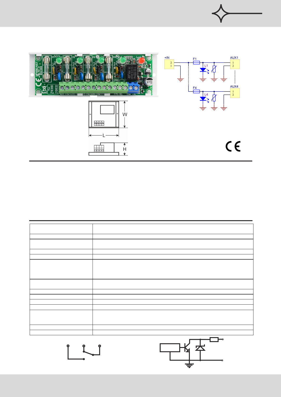 Uszkodzenie bezpiecznika sygnalizowane jest poprzez zgaszenie odpowiedniej diody LED: L1 dla AUX1 itd. Dodatkowo