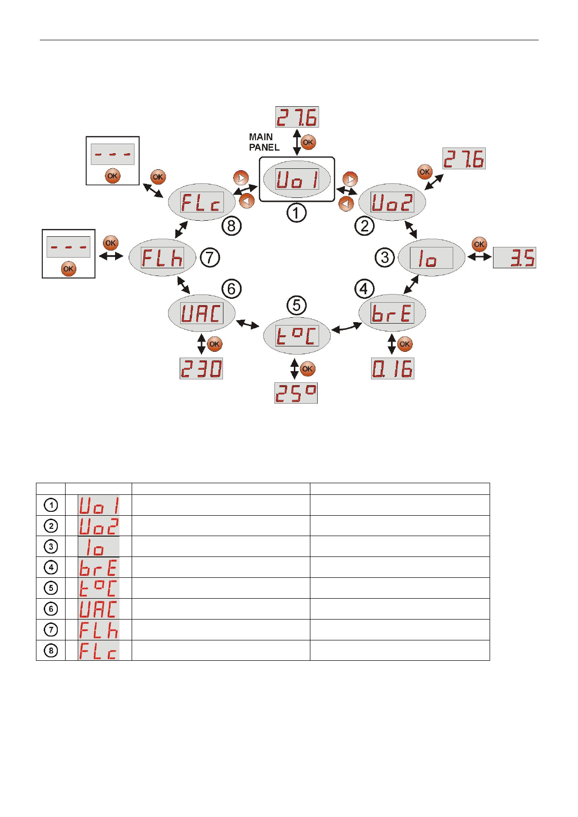 Le menu de l’afficheur LED permet de visualiser les paramètres électriques en temps réel.