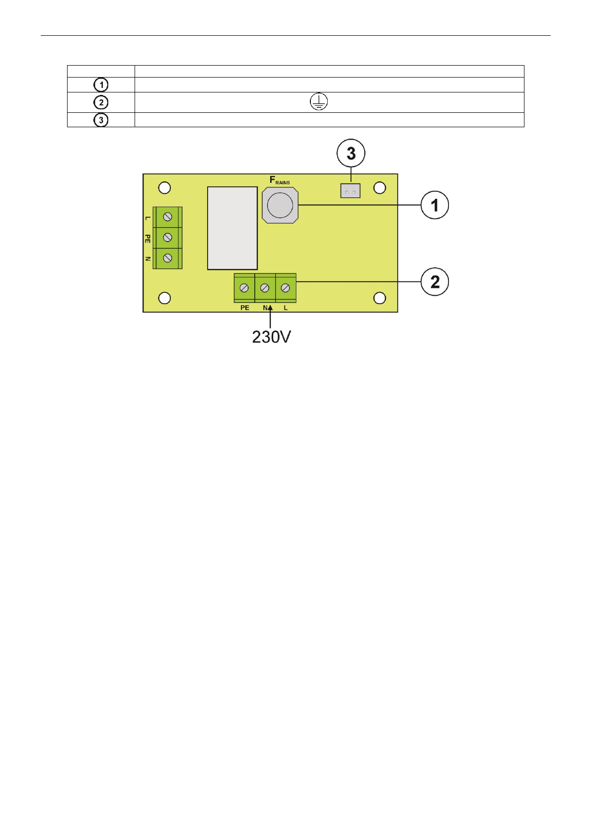 L-N Klemme der Versorgung 230 V , Schutzklemme
