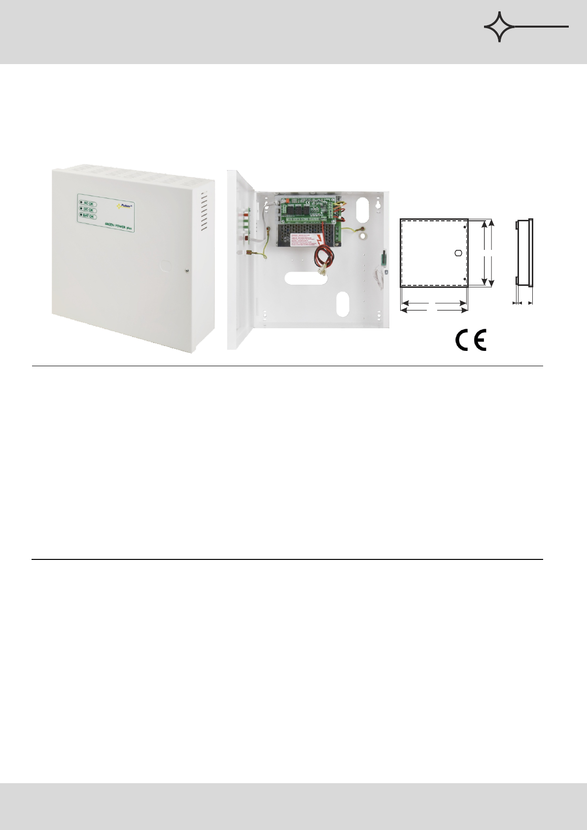 akumulátor 7Ah/12V. Skrinka má mikrospínač na signalizáciu otvorenia dvierok (predného panelu).
