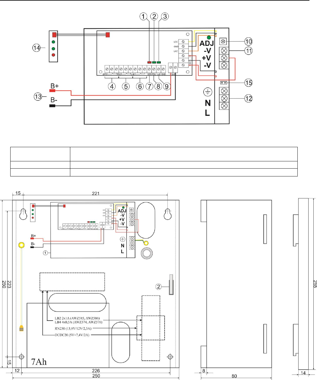 HPSBOC 13.8V/2A/7Ah/OC buffer, switch mode power supply unit with technical outputs