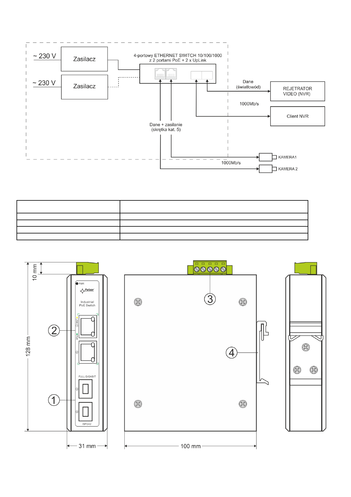Industrial switch ISFG42 (2xPoE, 2xSFP)
