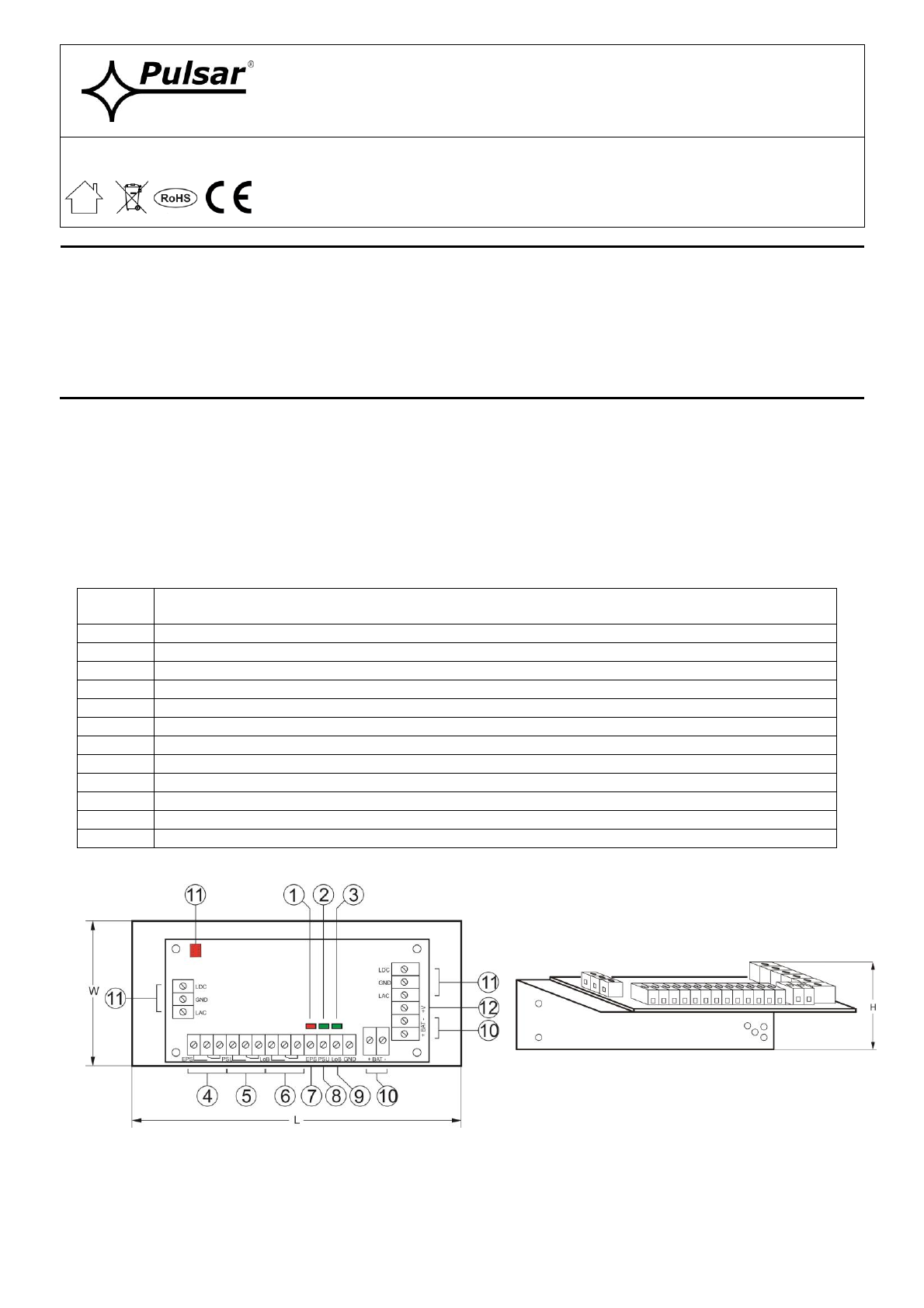 1.2. Opis elementów i złącz modułu zasilacza (rys.1, tab.1)