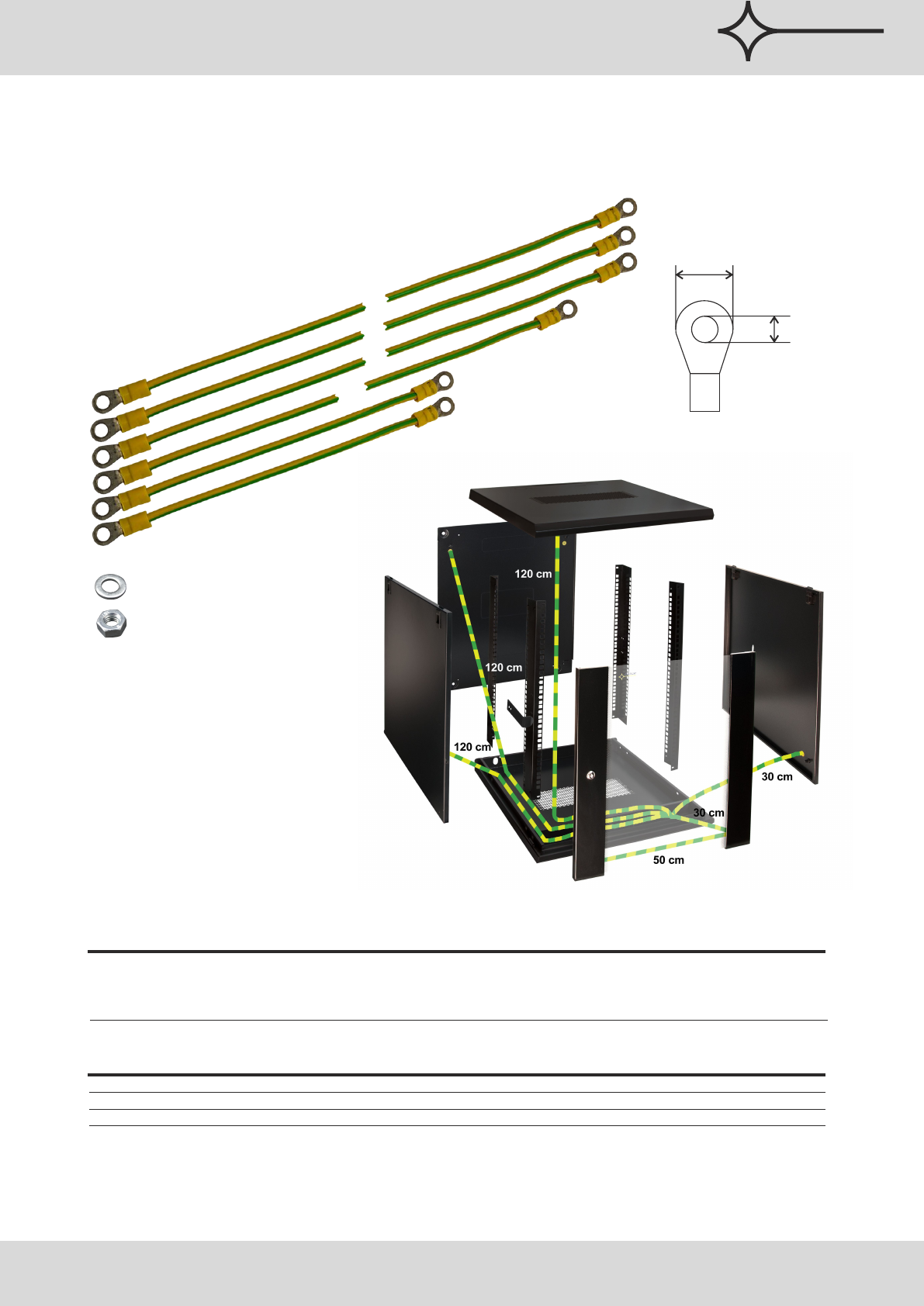 Set of grounding cables to Rack19" cabinets, RWA type. The set includes 6 grounding cable with a cross section of and the