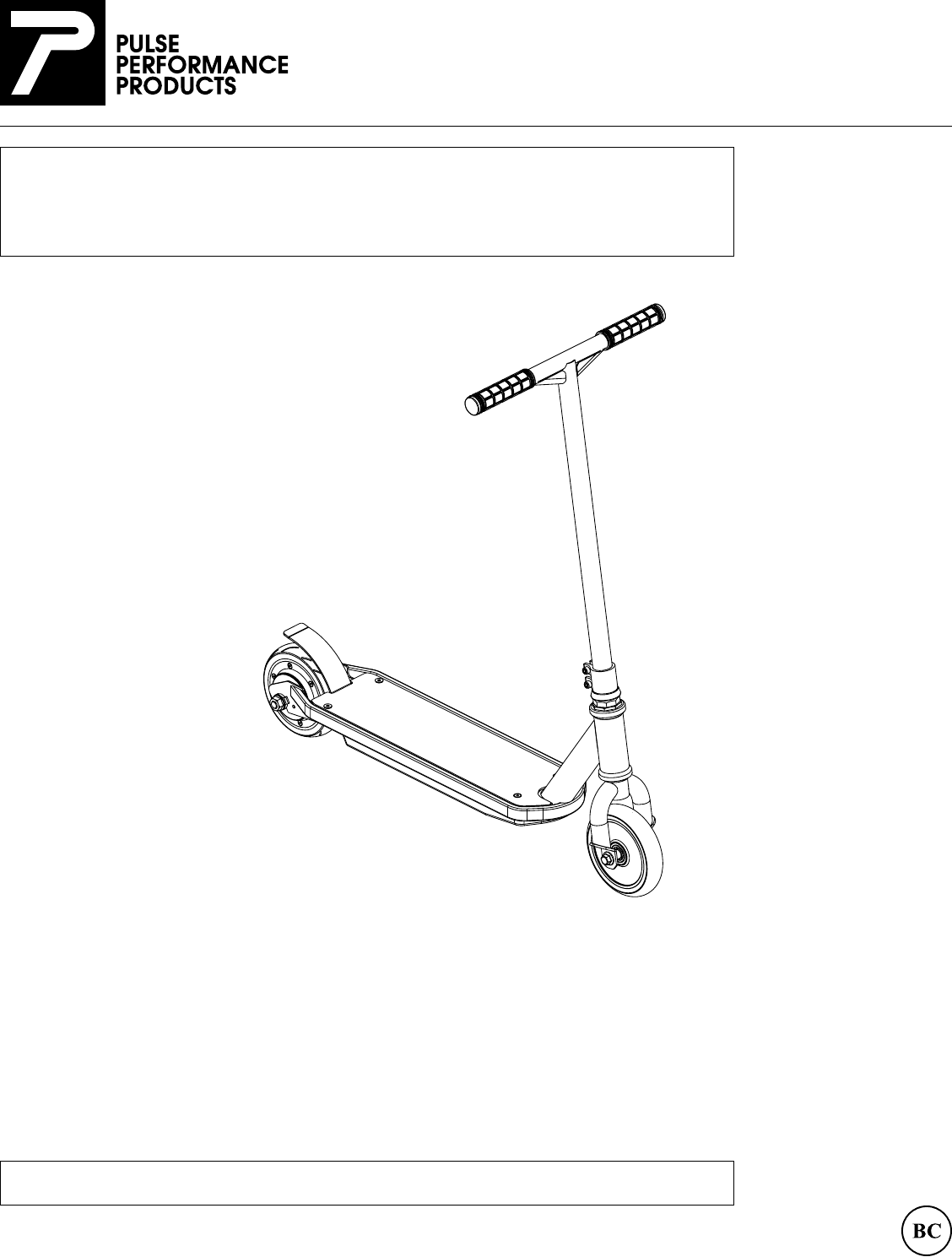 NOTE: TO OPERATE, PUSH START SCOOTER TO APPROXIMATELY 3 MPH WHILE STANDING ON THE DECK IN ORDER FOR MOTOR TO ENGAGE. THE SCOOTER MUST BE ROLLING AT 3 MPH BEFORE THE MOTOR WILL ENGAGE. ELECTRIC SCOOTER OWNER’S MANUAL FOR USE WITH THE FOLLOWING PULSE PERFORMANCE PRODUCTS™ SCOOTERS • DURA STREET DO NOT RETURN TO STORE! QUESTIONS OR COMMENTS? CALL (866)-434-6067 NOTE: Manual illustrations are for reference purposes only. Illustrations may not reflect the exact appearance of the actual product.