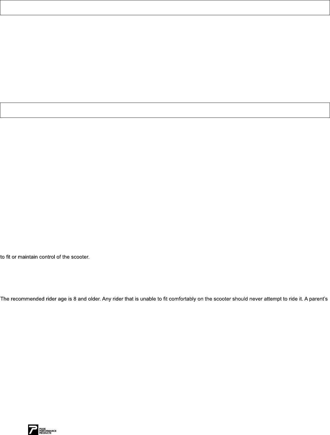scooter. Pulse Performance Products™ advises that you periodically review and reinforce all information in this manual with all riders, and
