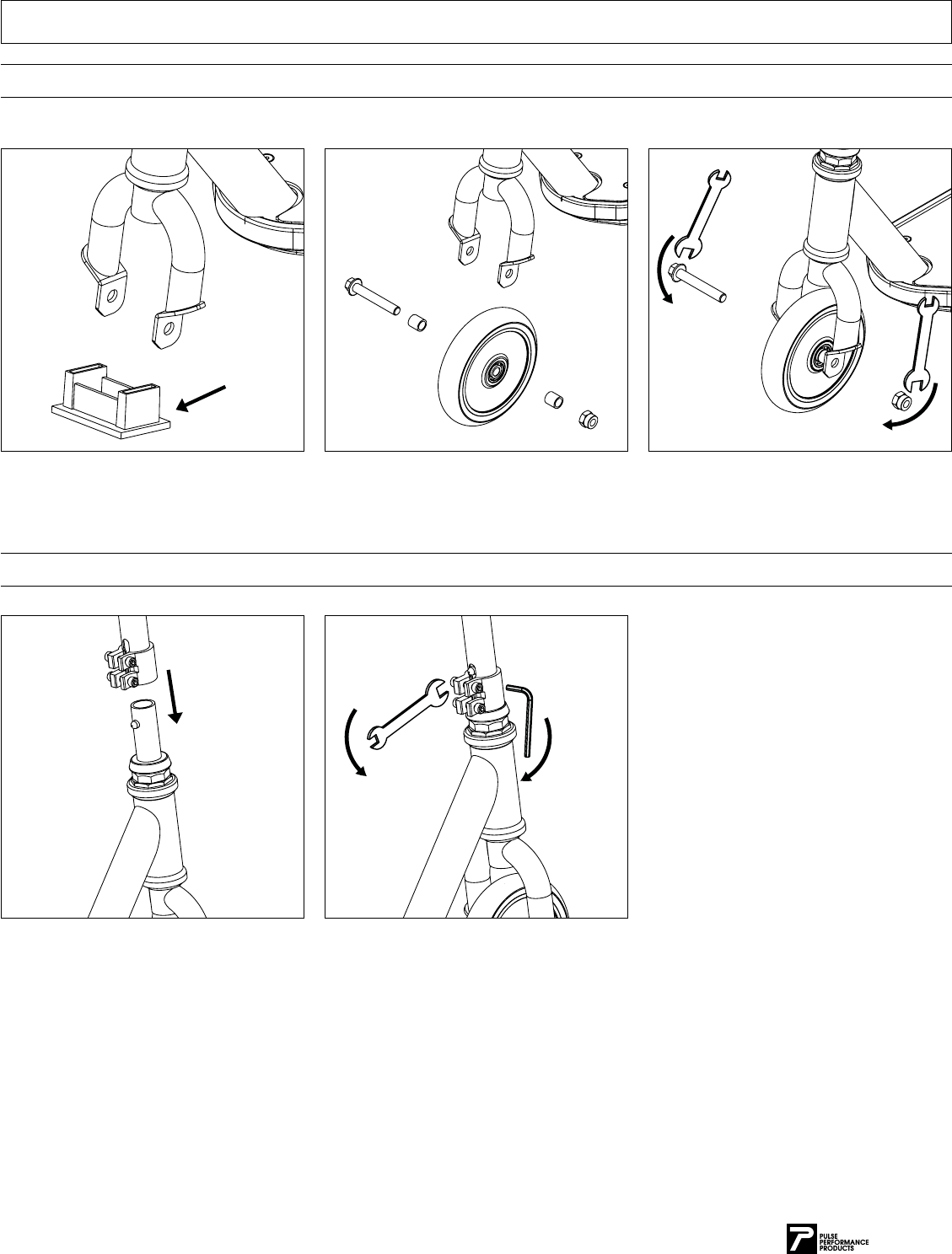 1. Remove and discard protective fork cap. 2. Insert front axle and hardware through front