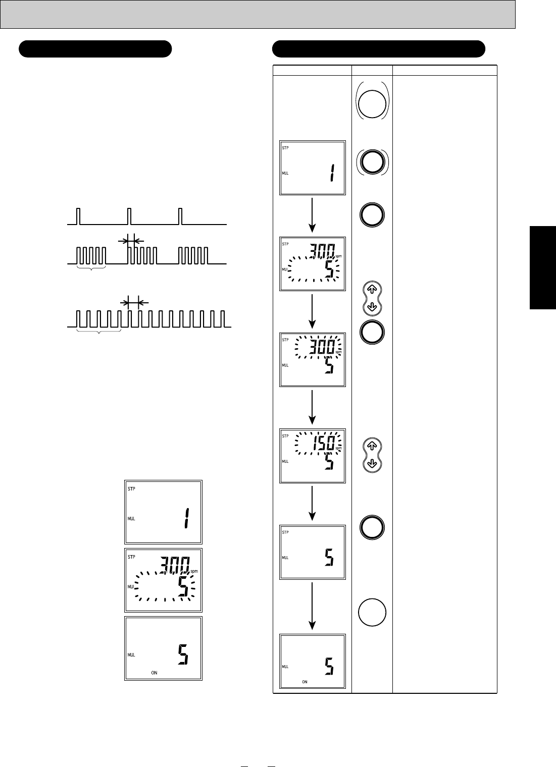 (A) The pump operates 5 times at a stroke speed of 300 spm (default).