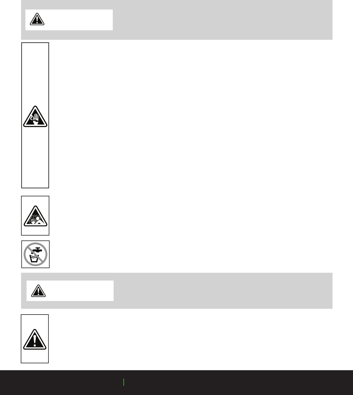 WARNING! Do not use an extension cord. Extension cords could present a safety hazard if not properly sized,