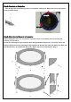 Step 2: Place Legs on Trampoline Twist 4x Legs into the threaded grooves on trampoline, until secure. Make sure to leave two spaces empty as shown below. NO LEG NO LEG Step 3: Attach Handrail Supports to Trampoline Flip the trampoline over. Use a screwdriver to punch two holes on the padding where the handrail will assemble as shown below. Locate the remaining 2x Legs and place them through Handrail Supports A (7) and B (8).