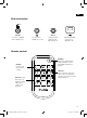 Introduction Front panel controls S n o o z e H a n d l e® SnoozeHandle Tap to snooze the alarm Volume dial Adjust and mute volume (see page 6) Volume Select Presets 1 − 5+ Store up to 15 digital and 15 FM radio preset stations (see page 10) Source Press to select Digital radio, FM radio, Bluetooth or Auxiliary input (see page 6) Menu Setup options (see page 14) Remote control sensor See page 5 Timer Kitchen timer (see page 13) Sleep timer (see page 13) Select dial Turn and press to browse and sele