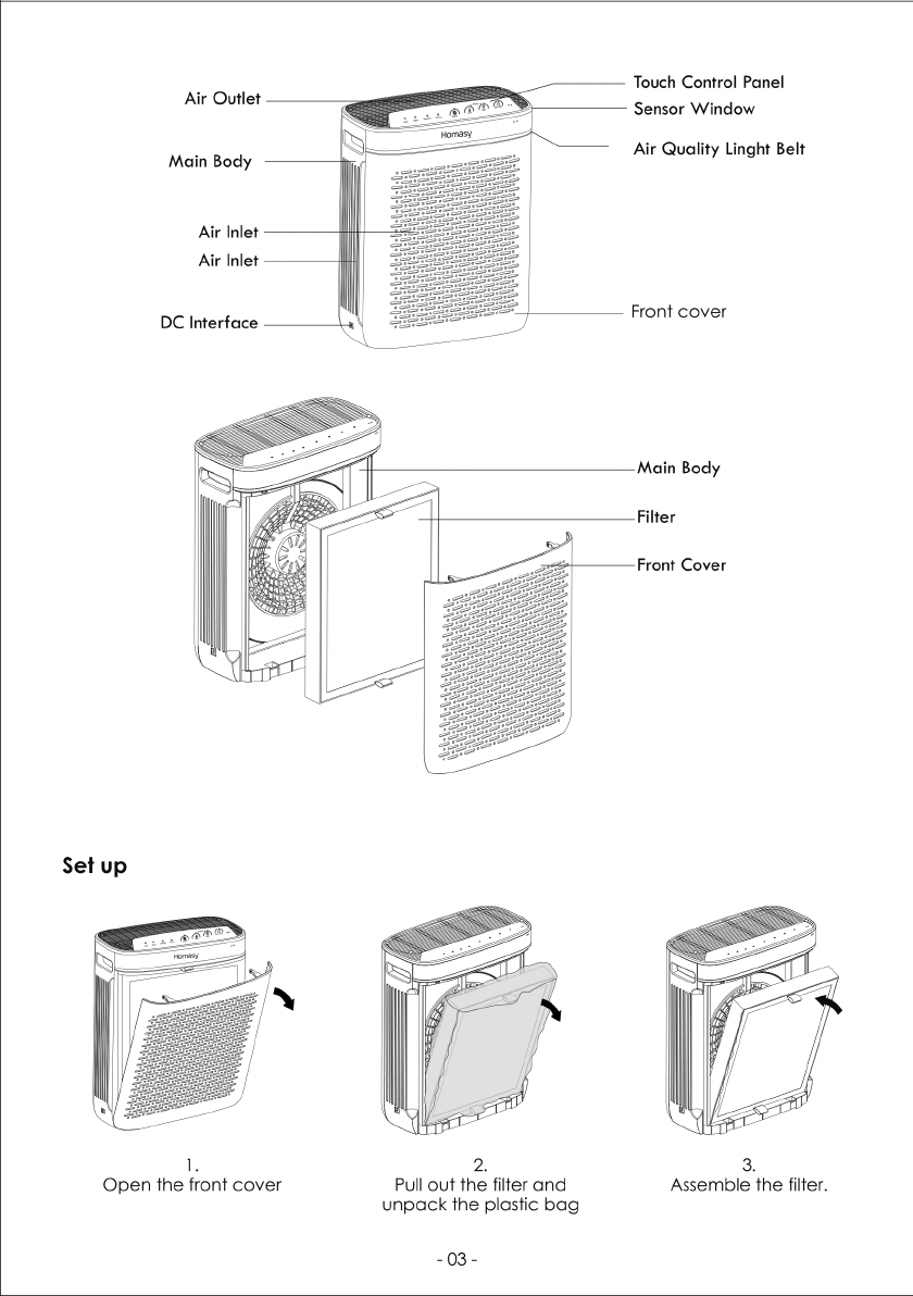 Air Purifier for Home with Ture HEPA Filter, Air Cleaner for Large Room 300-320Sq.Ft, Advanced 3 in 1 Filter Purifier with 4 Speed Fans for Smoke, Dust, Pollen, Pet Dander, 25dB Quiet