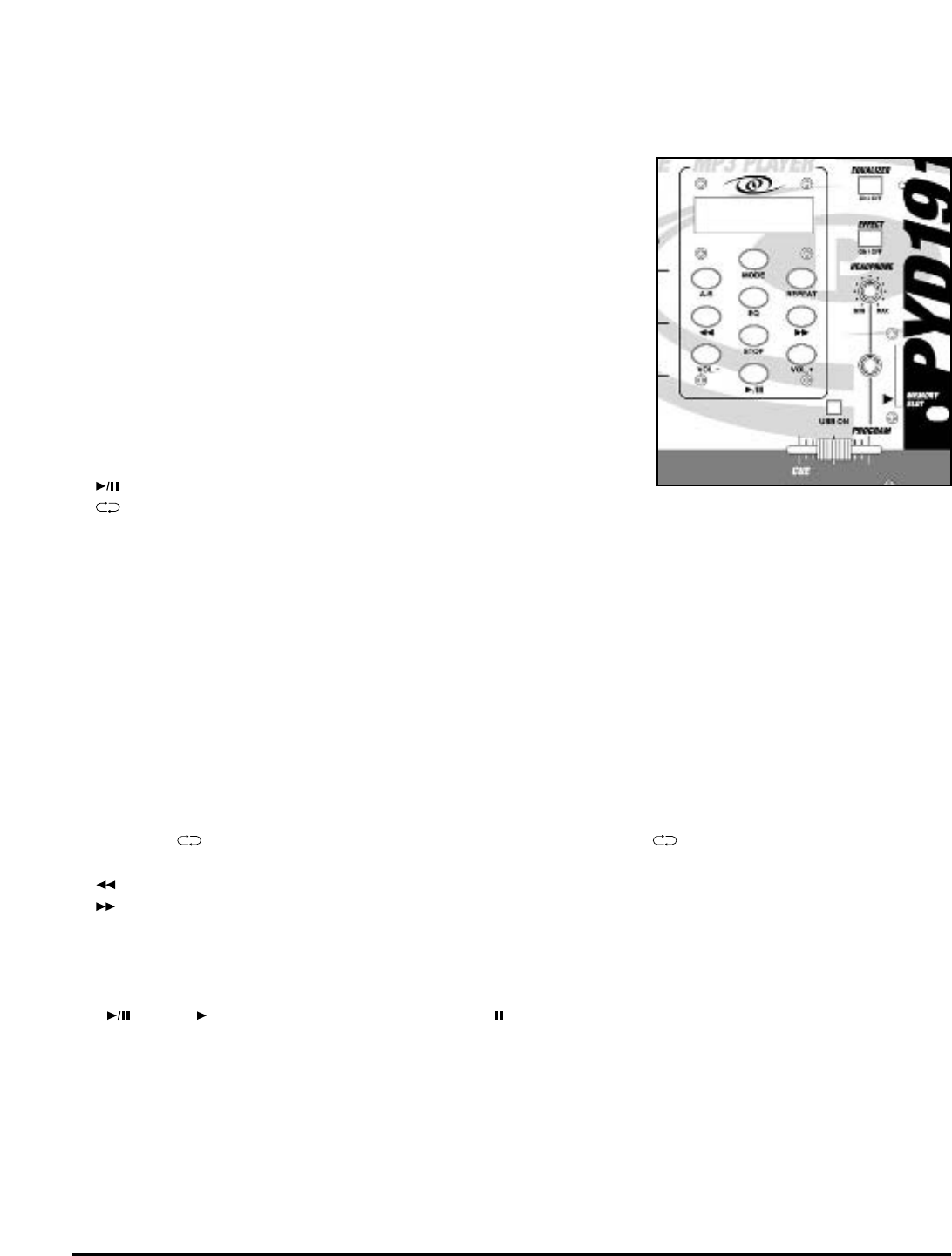 :Press (PLAY) once to play MP3; press (PAUSE) again to halt.