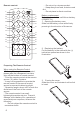 Remote control: - Do not put in a trouser pocket. - Keep away from food, moisture and dirt. - Do not place in direct sunshine. 9 15 6 28 41 22 40 29 19 39 30 31 38 Battery replacement Battery type: a button cell lithium battery (CR2025 3V) 1. Opening the battery case Slide out the battery cover while firmly pressing in the direction of the arrow. 32 37 16 36 17 35 33 25 20 24 34 14 23 13 2.