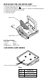 INSTALLATION Ceiling-on Installation Bracket Levers Tapping Screws (M4x10) Fixing holes Mounting Bolts (M3x6) Fig. 2 1. 2. 3. 4. 5. Determine the mounting location and drill four mounting holes. Attach the bracket to the holes with the tapping screws (M4x10). Let the two levers aim at the fixing holes to fix the display unit. Attach the unit to the bracket with the mounting bolts (M3x6).