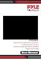 WHAT'S IN THE BOX: • Headset Microphone • Remote Control • 9V Power Adapter Cable • Convenient Carry Strap TECHNICAL SPECS: • Output Power: 10 Watt • Lyric (Text) File-Type Compatibility: .LRC • *Download Your Own Lyric Files • Full Battery Provides up to 6 Hours Operation • Loudspeaker Driver: 3'' • Impedance: 4 Ohm • S/N Ratio: >80dB • Power Supply: 110/220V • Digital Audio File Support: MP3, WMA, WAV • MAX Flash Memory Support: 32GB • Size: 5.5'' x 4.7'' x 5.2'' www.PyleUSA.