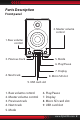 Parts Description Front panel 2. Master volume control 1. Bass volume control 5. Mode 3. Previous track 6. Play/Pause 7. Display 4. Next track 8. Micro SD slot 9. USB card slot 1. Bass volume control 2. Master volume control 3. Previous track 4. Next track 5. Mode 6. Play/Pause 7. Display 8. Micro SD card slot 9. USB card slot www.PyleUSA.