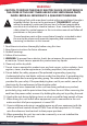 WARNING! CAUTION: TO REDUCE THE RISK OF ELECTRIC SHOCK, DO NOT REMOVE THE COVER OF THIS UNIT. THERE ARE NO USER SERVICEABLE PARTS INSIDE. REFER ALL SERVICING TO A QUALIFIED TECHNICIAN. The lighting flash with arrow head symbol within an equilateral triangle is intended to alert the user to the presence of “DANGEROUS” voltage within the product’s enclosure that may be of sufficient magnitude to constitute a risk of electric shock to humans.