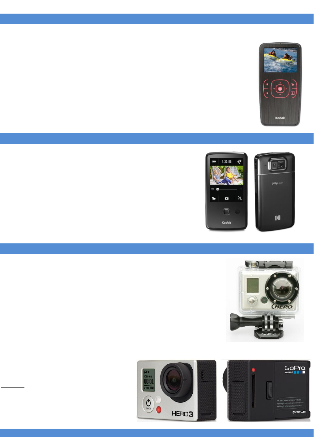 Summary: Very simple to use HD handheld camcorder. Records in 720p with widescreen aspect ratio.