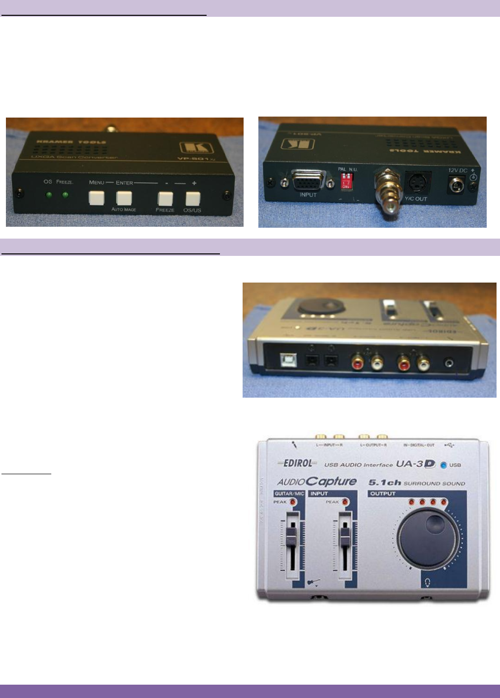 Can be used to record computer outputs or convert for conferencing equipment etc…