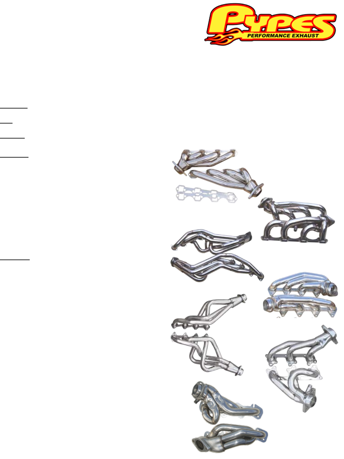 Thanks again for purchasing your new 304 polished stainless steel Pypes Performance Exhaust (PPE) Ford Mustang Headers.