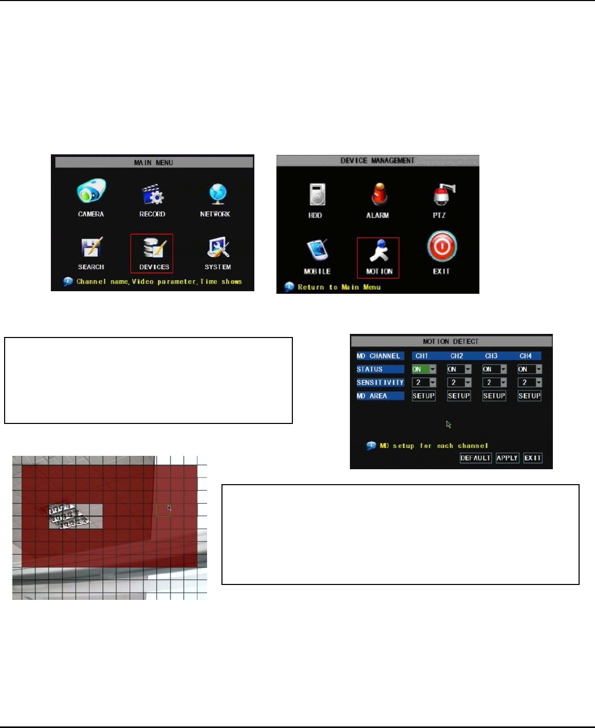 Your DVR will record on Motion Detection. Click APPLY to activate your customized schedule, and then go to the Devices