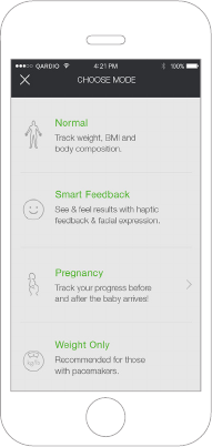 hasta QardioBase y seleccionar “Configuración del modo”.