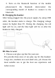 . Turn on the bluetooth function of the mobile phone/search the bluetooth device/select the corresponding model of headset to connect to the bluetooth. II. Charging the headset After being plugged into the power supply by using USB cable, the headset starts to charge. The charging voltage cannot be higher than 5V. During the charging, the red light will be on, and the blue light will be on after the headset is fully charged. III. How to wear 1.