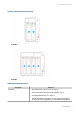 TS-x53Be Bedienungsanleitung Diese Funktion unterstützt inkrementelle Sicherung. Der NAS kopiert ausschließlich jene Dateien, die nach der letzten Sicherung geändert oder hinzugefügt wurden. Weitere Informationen zum Konfigurieren der USB-One-Touch-Kopie finden Sie im QTS-Benutzerhandbuch. LEDs Wenn der NAS eingeschaltet ist, zeigen die LEDs den Systemstatus und weitere Informationen an.