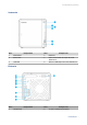 TS-x53Be Bedienungsanleitung Komponente Kompatible Laufwerke TS-253Be TS-453Be • 3,5"-SATA-Festplattenlaufwerke • 2,5"-SATA-Festplattenlaufwerke • 2,5"-Solid-State-Drives Hot-Swap-fähig Ja Anmerkung SSDs, die PCIe-Erweiterungssteckplätze verwenden, sind nicht Hot-Swap-fähig Netzwerk Gigabit-EthernetPorts 2 x RJ45 Externe E/A-Anschlüsse & Erweiterungssteckplätze PCIe-Steckplätze 1 x PCIe 2.0 x2 USB-Ports 5 x USB 3.0 • Vorderseite: 1 x USB 3.