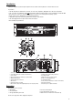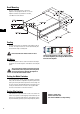 Montaje en bastidor Use cuatro tornillos y arandelas para montar el amplificador en los rieles del bastidor del equipo. Para usar el amplificador sin bastidor, instale las patas de caucho autoadhesivas en la parte inferior. ES Enfriamiento El aire fluye desde el bastidor hacia el interior por la parte posterior del amplificador y hasta afuera por la parte frontal. Este mantiene el bastidor frío. El ventilador automáticamente funciona más rápido cuando el amplificador está trabajando mucho.