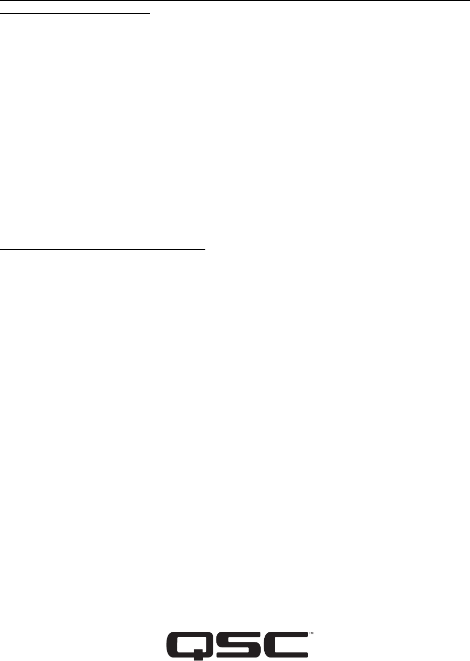 QSC Audio Products, Inc. 1675 MacArthur Boulevard Costa Mesa, California 92626 USA