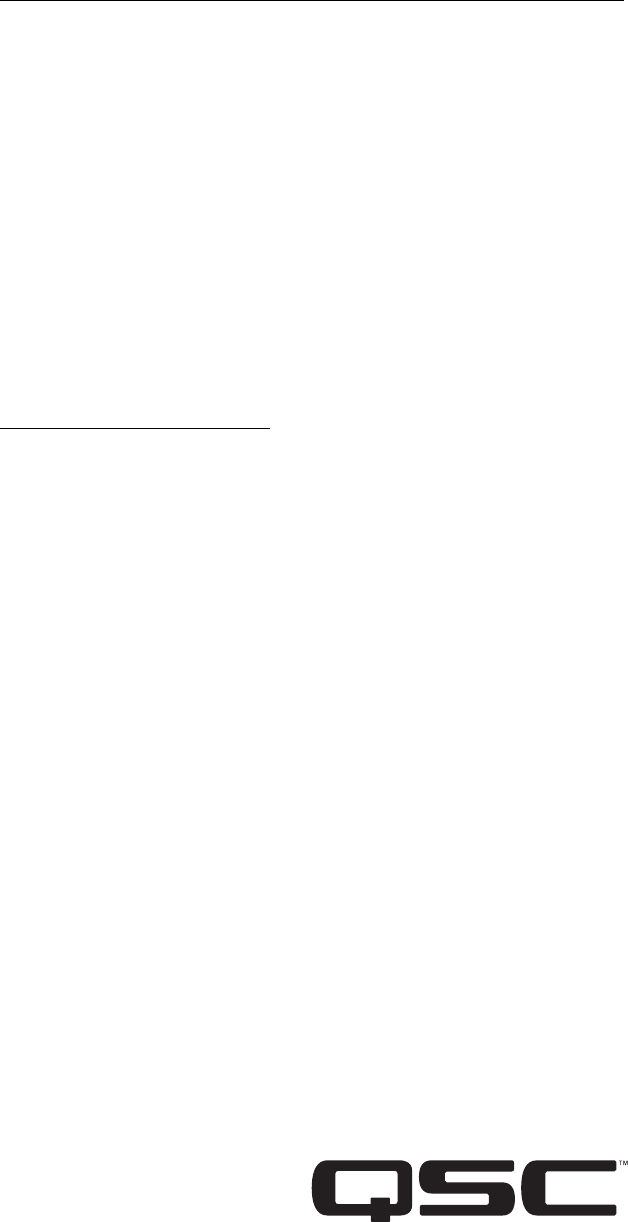 QSC Audio Products,Inc.1675 MacArthur Boulevard Costa Mesa, California 92626 USA