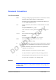 Document Conventions Text Conventions bold Bold type within paragraph text indicates commands, file names, directory names, paths, output, or returned values. Example: The DK_Client package will not function unless you use the wdreg_install batch file. italic Within commands, italics indicate a variable that the user must specify. Example: mem_alloc size_in_bytes Titles of manuals or other published documents are also set in italics. Courier The Courier font indicates output or display.
