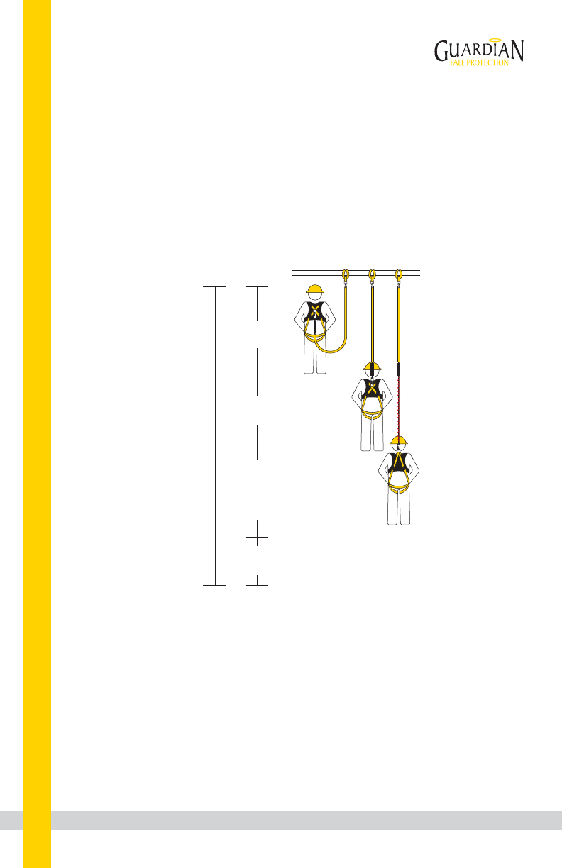 before the user strikes the ground or an obstruction. When calculating fall clearance, account for