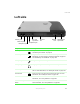 Left side Left side Modem jack Ethernet jack PC Card eject button Headphone jack PC Card slot Diskette drive Diskette drive eject button Microphone jack Component Icon Description Modem jack Plug a modem cable into this jack. For more information, see “Connecting the modem” on page 26. Ethernet jack Plug a 10/100 Ethernet network cable into this jack. For more information, see “Connecting to an Ethernet network” on page 27 and “Networking Your Notebook” on page 139.