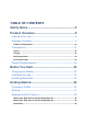 TABLE OF CONTENTS Safety Notes ...............................................................5 Product Overview ......................................................8 Indication for Use ....................................................................... 8 Package Contents ...................................................................... 9 Product Configurations ....................................................................................... 10 Components ..................................