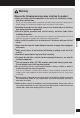 Safety information (continued) Warning Observe the following warnings when handling Cigarette Lighter Adapter and AC Charger. Securely insert the power plug all the way up to its base. Failure to insert it all the way may cause an electric shock, or the generation of heat resulting in a fire. Do not use a damaged plug or loose outlet. Routinely remove dust from the plug of the AC Charger (option).